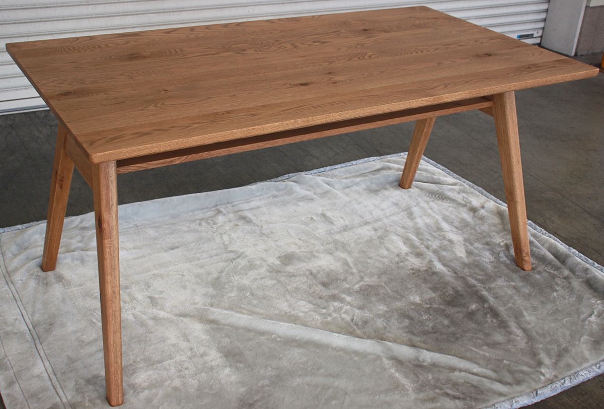 木目や節など、オーク材の豊かな表情を楽しめるダイニングテーブル